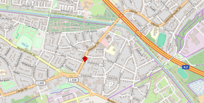 Sie finden uns im Zentrum von Ickern, dem nördlichsten Stadtteil von Castrop-Rauxel. Die Kanzlei liegt in der Klopstockstraße 2, Ecke Ickerner Straße, gleich gegenüber der Sparkasse.